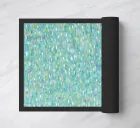 This image depicts an abstract painting characterized by a multitude of short, vertical brushstrokes in a variety of colors set against a soft blue background. The strokes create a textured and rhythmic surface that gives the impression of gentle movement or perhaps falling rain. There is a sense of depth created by the layering of paint, with hints of warmer tones peeking through cooler ones. The overall effect is calming and reminiscent of nature's elements, evoking feelings similar to watching light reflections on water or leaves rustling in the breeze.