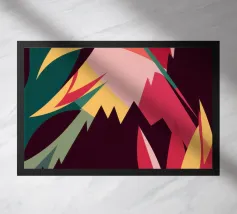 Un'energica opera d'arte astratta composta da frammenti di verde, giallo, rosa e nero che si scontrano tra loro. La composizione dinamica crea un senso di caos controllato e di energia moderna e tagliente.