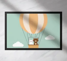 Questa incantevole opera d'arte raffigura un simpatico orso e un piccolo uccello che fanno un giro in mongolfiera, alla deriva in un cielo pieno di soffici nuvole. I colori tenui e le immagini giocose ne fanno un disegno perfetto per i prodotti per bambini, come l'arte murale della nursery e l'abbigliamento. Può anche aggiungere un tocco di fantasia a quaderni, borse o biglietti d'auguri, per tutti coloro che amano le opere d'arte carine e ispirate all'avventura.