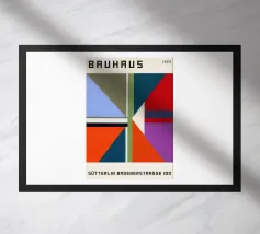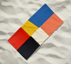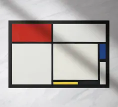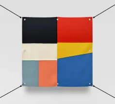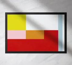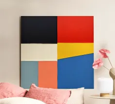 Questa opera d'arte presenta un insieme di audaci forme geometriche disposte a griglia.