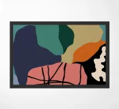 Un pezzo astratto, lunatico e sofisticato, che combina forme organiche e linee grafiche decise. La tavolozza di colori, composta da blu profondo, rosa arrossato e nero, crea un'estetica drammatica e contemporanea.