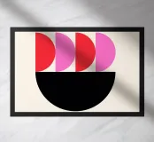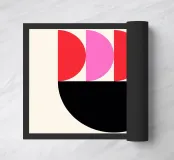 Questo moderno motivo geometrico astratto combina audaci forme semicircolari in rosa, rosso e nero per creare una composizione chiara ed espressiva di ispirazione midcentury. Il design minimalista è al tempo stesso essenziale, grafico e attento alle tendenze: ideale per un'arte da parete moderna in salotto, per una decorazione elegante in ufficio o per spazi abitativi creativi. Arte di forme astratte, poster geometrico moderno, murale dichiarativo, decorazione di design Scandi, geometria boho, stile grafico retrò, arte di forma contemporanea, superfici di colore calme, murale di design, decorazione estetica della casa, interior design moderno.
