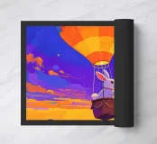 Coniglio che cavalca una mongolfiera con pittura fauvismo stile arte