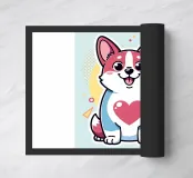 This cheerful, lively corgi adores animal lovers. Dressed in subtle pastel colours, he carries his heart on his sleeve.