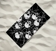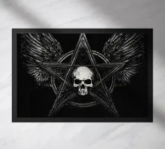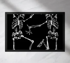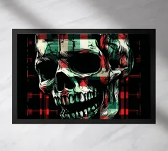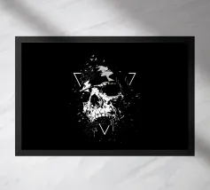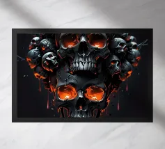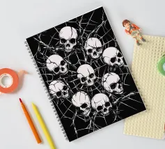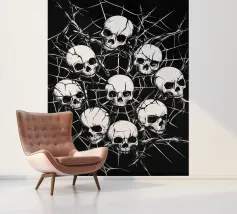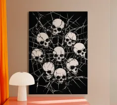 Diversi teschi sono appesi in una ragnatela di ragnatele e rami spinosi. La scena è in bianco e nero e appare oscura e misteriosa per la ricchezza dei dettagli. Un motivo a metà tra l'incubo e l'opera d'arte.