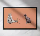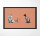Un'illustrazione comica delle stranezze della pronuncia. Alcuni dicono Cut, altri dicono Cat, e tutto dipende dal divario tra nord e sud. Qui abbiamo il più peloso dei gatti, il Maine Coon, e il gatto meno peloso, il gatto sfinge, che si scontrano sul modo in cui la loro specie viene scambiata per il taglio delle forbici.