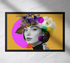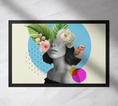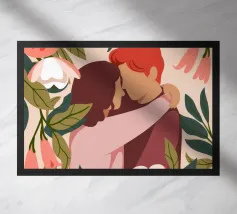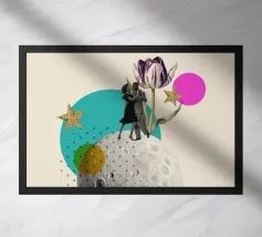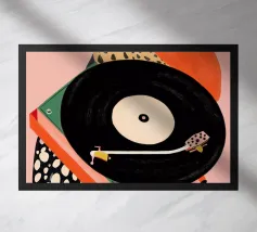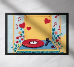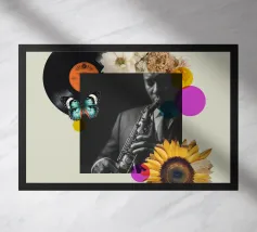 Una nostalgica stampa d'arte a collage che unisce fascino vintage e romanticismo. Un grammofono ornato esplode di fiori vivaci e dischi in vinile, mentre una coppia che balla cattura la magia della musica senza tempo. Un'opera d'arte da parete perfetta per gli amanti della musica, per gli appassionati di arredamento retrò o per chiunque sia attratto dalla narrazione di storie sentimentali attraverso il design.