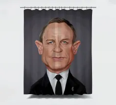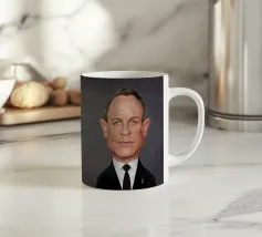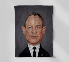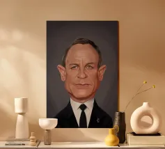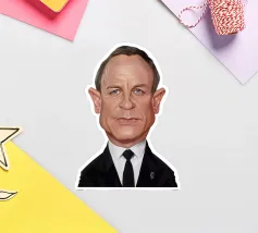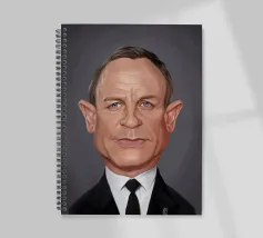 Illustrazione caricaturale umoristica del noto attore inglese Daniel Craig. Una delle caricature realizzate per la serie Celebrity Sunday, in cui un personaggio famoso viene ritratto nell'arco di una giornata. L'idea è di mostrarli come in una fototessera per avere coerenza.