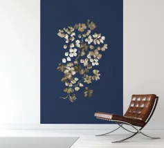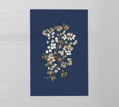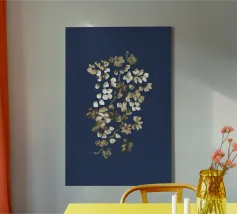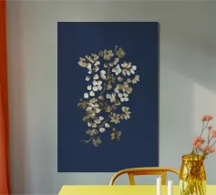 Questo dipinto presenta un'accattivante arte floreale astratta che combina un'estetica moderna con un'eleganza senza tempo. Una cascata di forme floreali astratte - rese in sottili tonalità di bianco e beige - è disposta lungo una disposizione verticale che crea un senso di movimento fluido e quasi dinamico. Lo sfondo blu scuro esalta il contrasto, permettendo alle forme delicate di risaltare e attirare lo sguardo dell'osservatore. Questo pezzo è ideale per gli interni contemporanei e funge da accattivante punto focale negli spazi abitativi moderni.