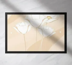 Questo elegante disegno presenta due fiori stilizzati nei toni tenui del rosa e del beige, circondati da delicate forme organiche. Emana leggerezza ed eleganza ed è perfetto per l'arte da parete, i cuscini o le tazze. Ideale per gli amanti dell'arte floreale moderna che desiderano creare un ambiente naturale e rilassante. Un'attrazione senza tempo per la vostra casa.