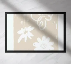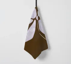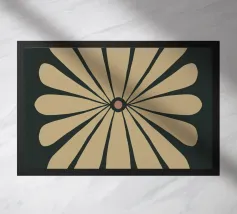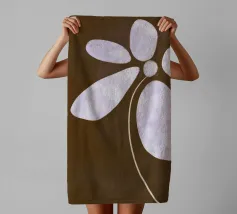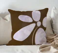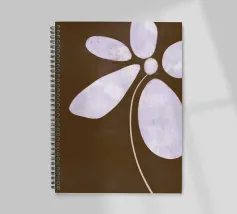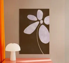 Il design semplicistico di un fiore con morbidi petali viola su uno sfondo marrone scuro crea un contrasto armonioso. I petali allungati del fiore e lo stile minimalista evocano un senso di calma e sobria eleganza.
