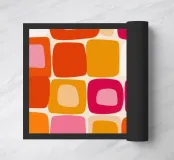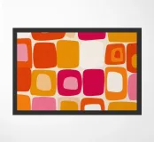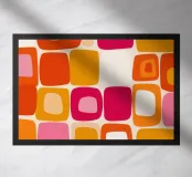 Questo disegno astratto è un omaggio esplosivo allo stile moderno della metà del secolo scorso e all'energia sfrenata della pop art. Rettangoli e quadrati arrotondati danzano in una tavolozza di colori caldi come l'arancio brillante, il fucsia, il rosso intenso e il pesca tenue. La composizione irradia un ottimismo quasi psichedelico, ma perfettamente equilibrato, grazie alla sua giocosità geometrica e alla stratificazione delle forme. Un capolavoro che diffonde immediatamente gioia, ravviva l'ambiente e celebra l'estetica degli anni '60 e '70 con una freschezza senza tempo.