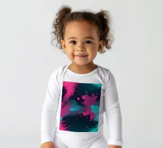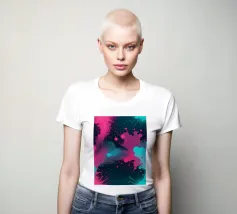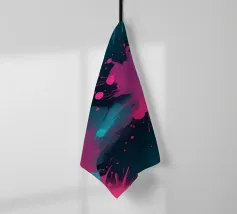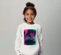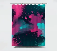 Spruzzi colorati di rosa e blu creano un energico disegno astratto su uno sfondo scuro, perfetto da usare come sfondo del desktop o decorazione artistica.