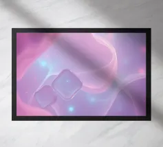 Due forme astratte di rosa sono in mostra su uno sfondo scuro, illuminato da sfumature luminose di viola e blu. Questo design artistico crea uno sfondo per telefono visivamente accattivante.