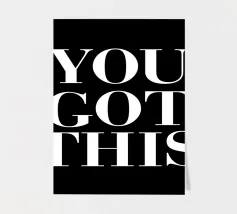 Date forza al vostro spazio con la stampa d'arte "You Got This". Questo design audace presenta un'elegante tipografia serif bianca su un elegante sfondo nero, creando una potente dichiarazione visiva. Perfetta per chi ha voglia di fare, per chi sogna e per chiunque abbia bisogno di una dose quotidiana di fiducia, questa versatile opera d'arte aggiunge un tocco di raffinatezza e incoraggiamento a qualsiasi ambiente. Il lettering pulito ed elegante fa sì che il messaggio risalti, servendo da costante promemoria della vostra forza interiore e delle vostre capacità. Lasciate che questo pezzo accattivante vi ispiri ad affrontare le sfide a testa alta e ad abbracciare il vostro potenziale.