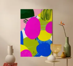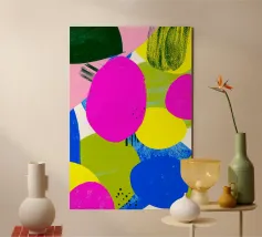 Portate la gioia alle vostre pareti con "Dopamine Shapes No.6", una vibrante composizione astratta che esplode di energia e colore. Questa stampa giocosa combina texture espressive a pennello e colori neon in rosa, giallo, verde e blu elettrico, irradiando positività e fascino pop-art. Perfetta per tutti coloro che desiderano vibrazioni massimaliste e un miglioramento dell'umore in casa.