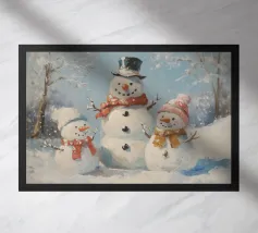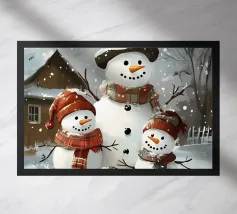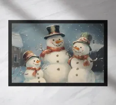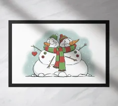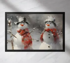 I due pupazzi di neve sono mano nella mano e mostrano le loro espressioni amichevoli. Ognuno di loro è adornato con un cappello e una sciarpa, circondato da fiocchi di neve che cadono sotto il cielo notturno invernale.