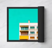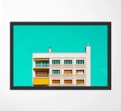 un contrasto sorprendente tra forma urbana e cielo vivido. Una struttura - moderna o classica - si erge sotto un audace sfondo turchese, dove luce, ombra e linee pulite incontrano il colore aperto. La scena evoca chiarezza, struttura e una nuova prospettiva sulla vita della città.