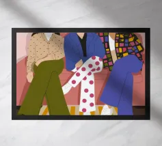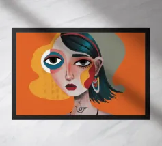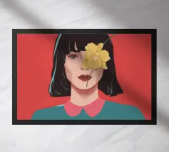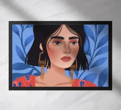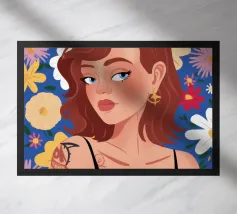 Questo dipinto raffigura una persona con un tatuaggio di una rosa sulla spalla. La persona indossa grandi orecchini d'oro e lo sfondo è di un rosso intenso, che sottolinea la natura audace ed espressiva dell'opera.