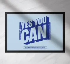 Quest'opera d'arte da parete presenta un design tipografico di grande impatto, con scritte audaci e rovinate in un gradiente blu intenso che conferisce un'estetica rock e grintosa.