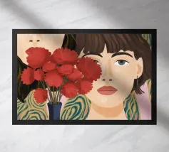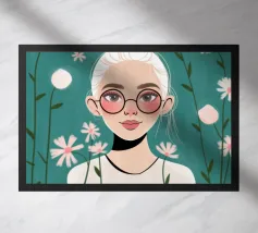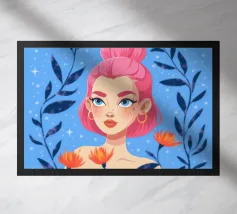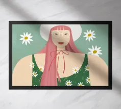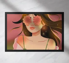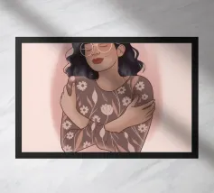 Il dipinto raffigura una persona con capelli corti e rosa su uno sfondo di fiori di ciliegio. La persona indossa una camicia verde e la composizione complessiva emana un senso di crescita e di sicurezza.