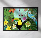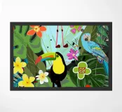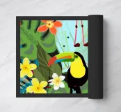 Fiori tropicali e uccelli sfondo nero