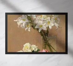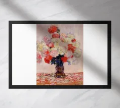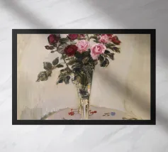 Graziosa riproduzione della natura morta dell'ultimo periodo di Manet, Fiori in un vaso di cristallo, dipinta nel 1882 circa. Un delicato bouquet disposto in un luminoso vaso di cristallo, reso con luce, consistenza e tranquilla eleganza. La magistrale pennellata e la sensibilità di Manet per le forme mettono in risalto la fragilità e la bellezza fugace dei fiori recisi Un pezzo senza tempo che aggiunge raffinatezza e fascino romantico a qualsiasi ambiente, dalle pareti delle gallerie agli angoli più raccolti. Impressionismo, nature morte floreali e semplicità poetica nell'arte bellezza sottile, stampa fine art, natura morta iconica, dipinto storico, fiori pastello, arte sua