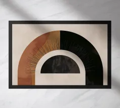 Questa moderna opera d'arte gioca con forme geometriche e colori vivaci. Una forte tonalità arancione incontra un blu tenue e un nero dominante, dando al design un effetto sorprendente ma armonioso. Gli archi curvi e le linee pulite creano un tocco contemporaneo e minimalista. Ideale per murales, cuscini, cover per cellulari o tazze, questo disegno si adatta perfettamente a spazi abitativi moderni, uffici o studi creativi. È un vero e proprio colpo d'occhio per tutti coloro che amano l'arte elegante e astratta.