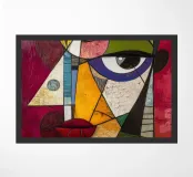 Un ritratto audace e vibrante di ispirazione cubista, ricco di colori e texture. Fragmented Vision reimmagina il volto umano attraverso l'astrazione geometrica: piani sovrapposti di cremisi, ocra, smeraldo e viola creano un senso di complessità emotiva e dinamismo moderno. L'occhio espressivo attira l'attenzione, ancorando il caos in un unico momento di consapevolezza. Un pezzo forte per gli amanti dell'arte contemporanea e astratta.
