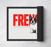 Un adorabile bulldog francese occupa un posto d'onore davanti a un'imponente tipografia rossa. Questo design moderno e accattivante evidenzia il fascino irresistibile del "Frenchie", il cane urbano per eccellenza. Ideale per gli amanti degli animali, delle razze canine iconiche e del design grafico pulito. Un visual che emana personalità e un atteggiamento francese cool.