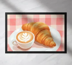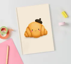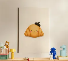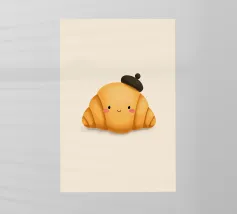 Questo adorabile disegno di croissant presenta un personaggio sorridente con guance rosa e un berretto francese nero. Perfetto per gli amanti delle illustrazioni kawaii e della pasticceria francese, questo motivo è ideale per le colazioni nei bar, nelle panetterie o come affascinante elemento decorativo in cucina. Il design giocoso porta gioia e un tocco di Parigi in ogni stanza.