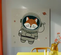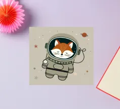 Questo affascinante motivo mostra una volpe fluttuante con una tuta da astronauta, pronta per un'avventura cosmica. Con toni verdi tenui e una rappresentazione dettagliata di stelle e pianeti, l'illustrazione irradia calma e senso di scoperta. Un disegno perfetto per chi sogna viaggi galattici.Volpe con tuta da astronauta