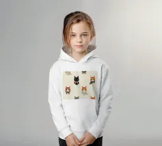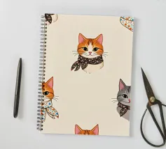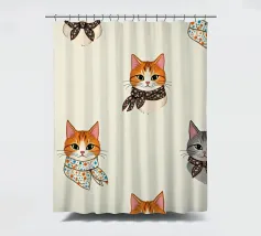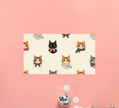 Il design stravagante presenta gatti giocosi di vari colori, ognuno dei quali indossa sciarpe uniche su uno sfondo chiaro. La vivace composizione mette in mostra creatività e fascino.