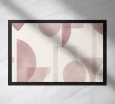 Il disegno presenta un'accattivante disposizione di cerchi, rettangoli e forme astratte di foglie sovrapposte, che alludono sottilmente a forme organiche all'interno della struttura. La texture granulosa aggiunge profondità e interesse visivo.