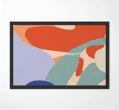 Una composizione astratta ispirata a Maraoui, con forme semplici e ritagliate in colori primari come il rosso, il blu e l'arancione su un morbido sfondo color lavanda. L'opera d'arte è al tempo stesso giocosa e sofisticata.