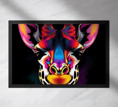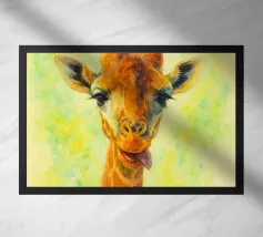 Una giraffa insolitamente messa in scena guarda l'osservatore con un sorriso affascinante - il tutto nei toni del viola e della lavanda, con uno sfondo di spruzzi di colore. Questa opera d'arte pop e giocosa si distingue chiaramente per la scelta dei colori e la rappresentazione astratta. È ideale per gli spazi moderni, le stanze dei giovani o gli uffici creativi ed è particolarmente interessante per le persone che amano le illustrazioni di animali insoliti o la pop art colorata.