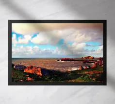 Questa splendida fotografia cattura un sereno paesaggio costiero. Perfetta per gli appassionati di natura e per coloro che apprezzano la tranquilla bellezza degli ambienti costieri, questa immagine conferisce un senso di pace e di splendore naturale a qualsiasi spazio.