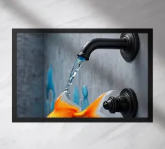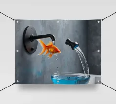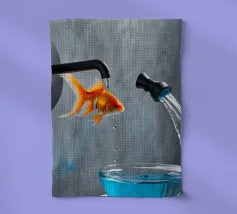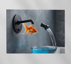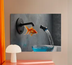 "Goldfish spits tap" è un'opera d'arte digitale in grafica computerizzata. Un umoristico pesce rosso spruzza acqua dalla bocca, che scorre in un rubinetto dalla forma artistica. I colori vivaci e i dettagli brillanti sottolineano la scena giocosa. Le tecniche digitali creano riflessi realistici e movimenti dinamici. Quest'opera combina fantasia e tecnologia e racconta in modo originale una storia stravagante e vivace, piena di energia e fascino.