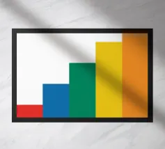 Questo design minimalista reimmagina il grafico a barre con un'estetica retrò e distintiva, fondendo la semplicità con un tocco di fascino vintage. Le sue linee pulite e la sua composizione equilibrata offrono una nuova prospettiva sulla visualizzazione dei dati, trasformando le informazioni in arte. Il pezzo suggerisce sottilmente progresso e ottimismo, rendendolo un complemento perfetto per chi apprezza le influenze moderne della metà del secolo e l'eleganza funzionale nel proprio arredamento. È una celebrazione della crescita in un formato visivamente accattivante.