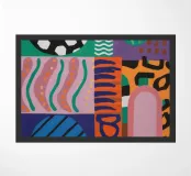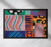 Una griglia vivace mette in mostra un mix eclettico di motivi, dai pois e le strisce alle forme organiche astratte, creando un patchwork moderno ricco e decorativo.