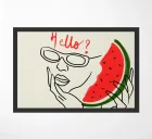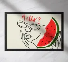 This playful line art illustration captures a cool figure wearing sunglasses, holding a juicy slice of watermelon like a phone. The handwritten “Hello?” adds a fun twist, bringing summer vibes and a touch of humor. Perfect for anyone who loves quirky art and fresh, carefree moments.
