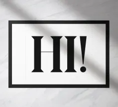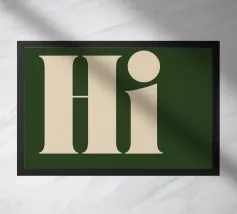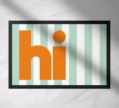 Semplice. Audace. Amichevole. Questa stampa HI si fa subito notare per la sua tipografia pulita e moderna. È perfetta per ingressi, soggiorni, uffici o qualsiasi altro spazio che necessiti di un tocco di energia accogliente. Che si tratti di un'estetica minimalista o di un'atmosfera divertente e giocosa, questa stampa aggiunge personalità con due sole lettere. Dite HI al grande design!