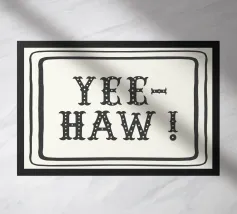 Questa stampa tipografica in bianco e nero è un'opera minimalista, che ripropone un audace saluto occidentale. Con scritte disegnate a mano in stile vintage e un look pulito e ad alto contrasto, è perfetta per gli interni monocromatici, per le stanze dei dormitori o per chiunque ami l'arte grafica con un pizzico di fascino del Sud.