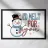 Un allegro pupazzo di neve con cappello a cilindro e sciarpa saluta, accompagnato dal testo scherzoso "Mi scioglierei per te", che mette in risalto il gesto caloroso del pupazzo di neve e i giocosi fiocchi di neve intorno al testo.