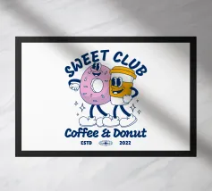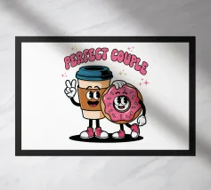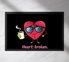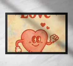 Una tazzina da caffè e un personaggio a forma di cuore sono raffigurati mentre si tengono per mano con la scritta "Ho bisogno di una sola cosa per riscaldare il mio cuore, il caffè".