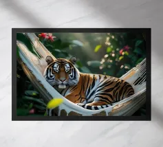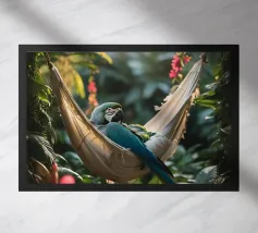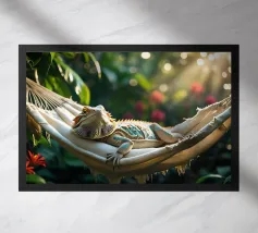 Questa iguana giace immobile sulla sua amaca, come se avesse deciso di non fare nulla oggi. Il sole filtra attraverso il verde, il tempo sembra essersi fermato. Un poster perfetto per ricordarvi che è giusto non fare nulla per un po', e che è bene tenersi l'estate ancora per un po'.