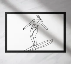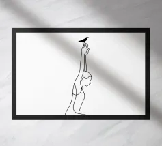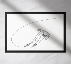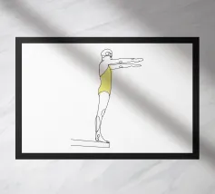 Cattura l'eleganza di un tuffatore maschio di metà secolo su un trampolino, illustrato in una line art minimalista con tenui colori pastello, questo splendido design aggiunge un tocco di vntage a qualsiasi prodotto.