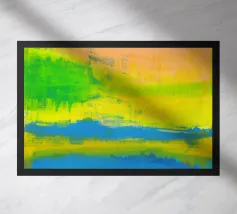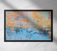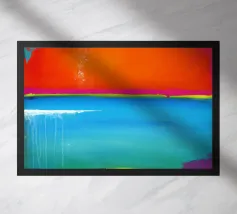 I toni astratti del blu e del turchese mirano a creare un'atmosfera rilassata e tranquilla. Guardando il mio quadro in cui l'acqua, il sole e l'orizzonte si fondono, l'immagine crea una sensazione di apertura e vastità.