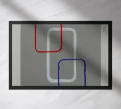 "Tre colori in forme. Due intenzioni. Un punto di equilibrio."