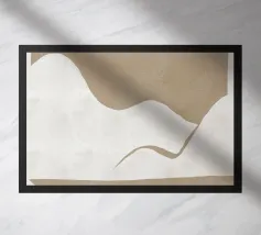 Forme curve e fluide in varie tonalità di beige, tortora e nero creano un senso di movimento e di forma astratta. La composizione offre un'estetica moderna e minimalista, utilizzando una palette di colori tenui per un impatto visivo rilassante.